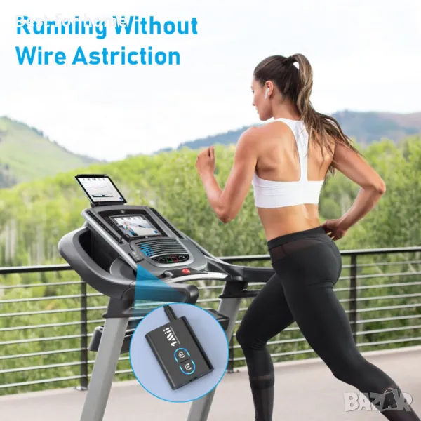 Безжично предавайте аудио от фитнес оборудване с 3,5 mm аудио порт към вашите безжични слушалки или слушалки.