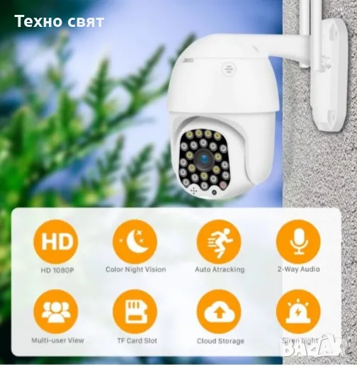 Нашата смарт камера е подходяща за наблюдение на жилищни и търговски сгради, къщи, вили, къщи за гости, апартаменти, паркинги и др. Достъпна 24/7 онлайн през вашия смартфона или компютър.