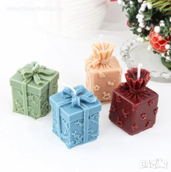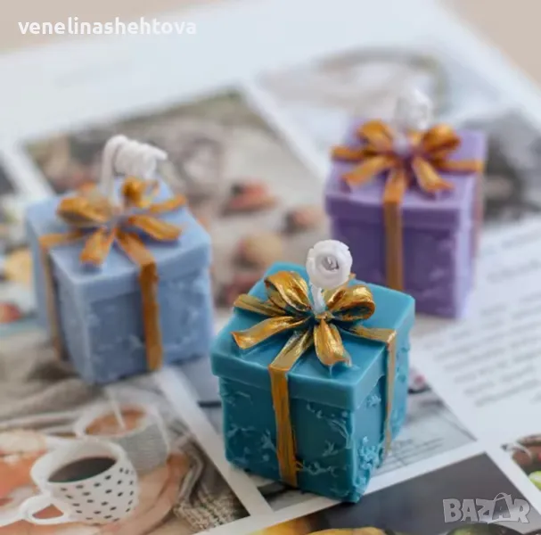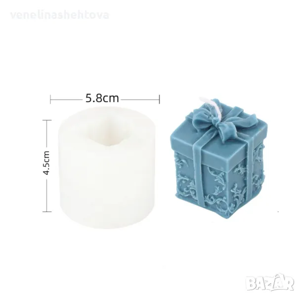 3D Силиконов молд форма "Подарък" с панделка за изработка на свещи гипс сапун фондан → Обява 47695802