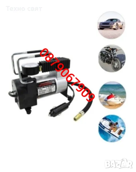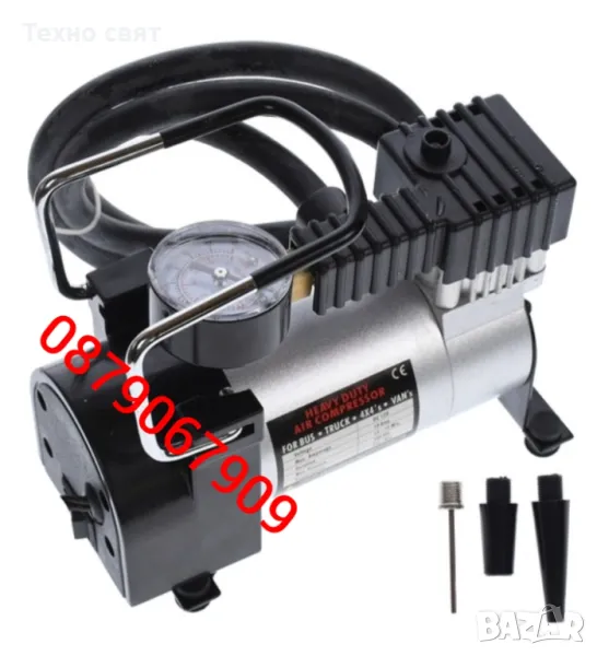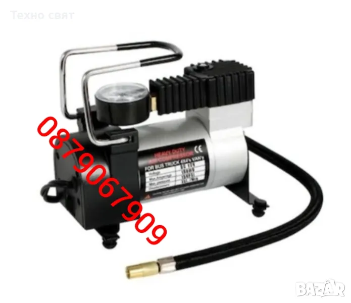 Интересното при този модел е, че той е по-устойчив от останалите. Това става благодарение на здравия метален корпус и подсилените маркучи и кабели. Можете да действате навсякъде с него, стига от запалката на автомобила, откъдето се извършва захранването, до желания обект за помпане, да има максимум три метра разстояние. Всъщност обсегът се увеличава с още цял метър, благодарение на дължината на въздушния маркуч. Захранването е със стандартните 12 волта, с ампераж 12.5.