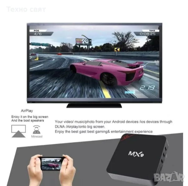 Устройство, което превръща стария ви телевизор в Super Smart TV! По-лесно за ползване за компютър, по-удобно за телефон. TV box на Български език и всичките му функции за вашият обикновен телевизор. TV BOX MX9 всъщност се явява пълноценен компютър, който дава друго измерение на домашните забавления!