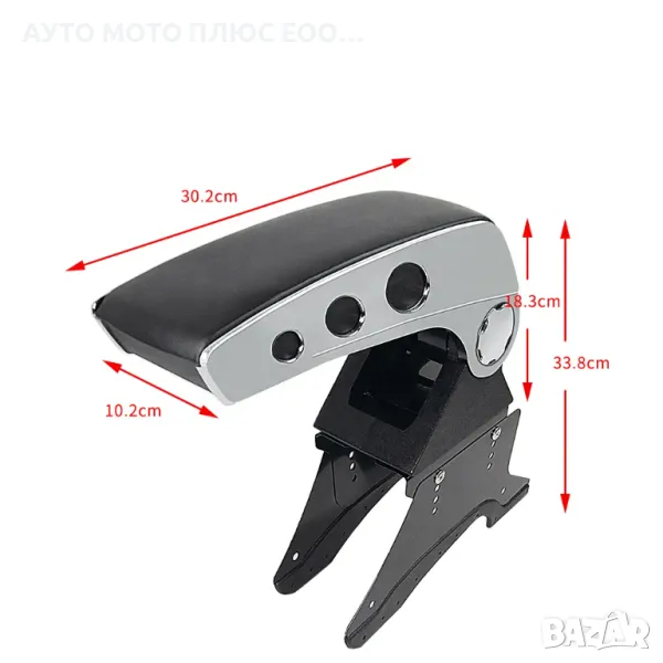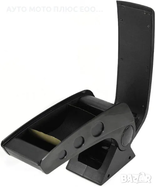 Подлакътникът се монтира на централната конзола между предните седалки и може да се регулира на височина. Изработен от твърда пластмасова основа, а отгоре тапициран с черна кожа, за по-добър комфорт на Вашето пътуване. Ширината на барчето е 12 см, за това разстоянието между предните две седалки не трябва да е по-малкo от 13 см. Подлакътникът се повдига на горе, от стойката, за да можете да използвате ръчната спирачка.