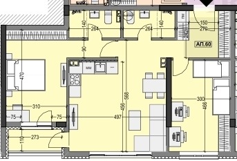 Специално този апартамент се състои от входно антре, дневна с трапезария и кухненски бокс, тераса, 2 спални, баня с тоалетна, второ санитарно помещение. Изцяло южно изложение.