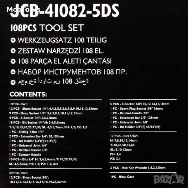 Гедоре 108 части 1/4” и 3/8” JCB, снимка 1 - Гедорета - 47698554 Гедоре 108 части 1/4” и 3/8” JCB, снимка 2 - Гедорета - 47698554 Гедоре 108 части 1/4” и 3/8” JCB, снимка 3 - Гедорета - 47698554 Гедоре 108 части 1/4” и 3/8” JCB, снимка 4 - Гедорета - 47698554 Гедоре 108 части 1/4” и 3/8” JCB, снимка 5 - Гедорета - 47698554 1/5