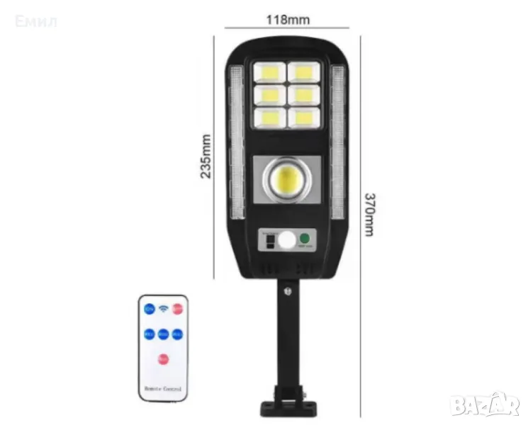 Соларна лампа с дистанционно управление, сензор за движение и светлина CL-728