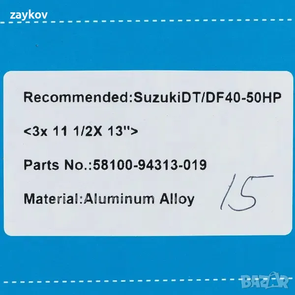Перка за мотор за лодка SUZUKI DT/DF 40-50 HP 58100-94313-019 ALU 3X11 1/2X13 → Обява 47698882