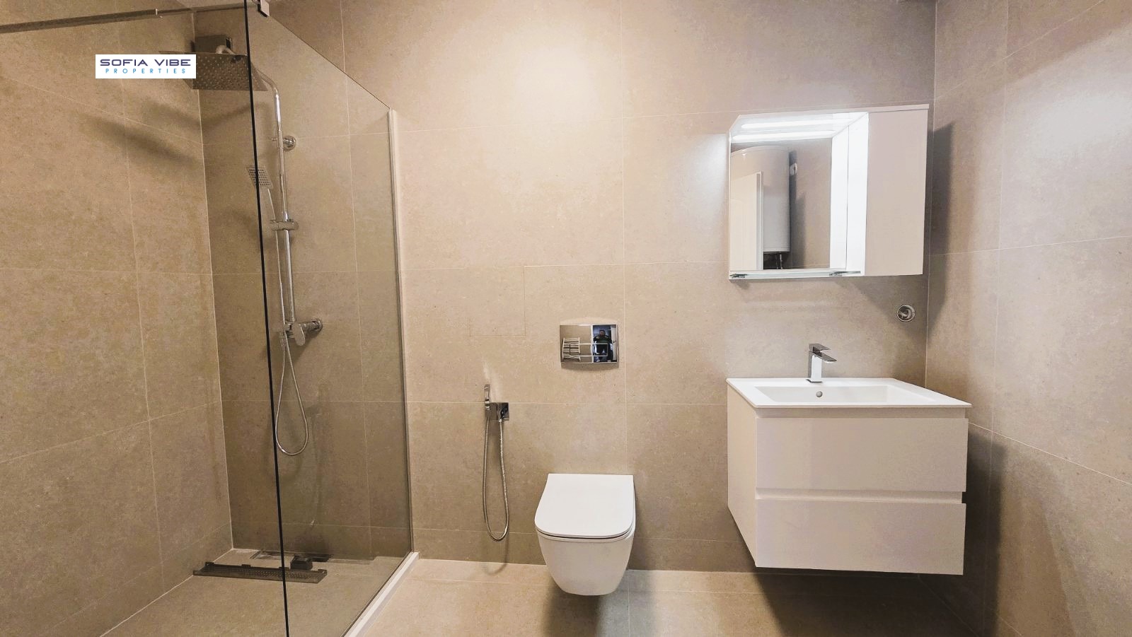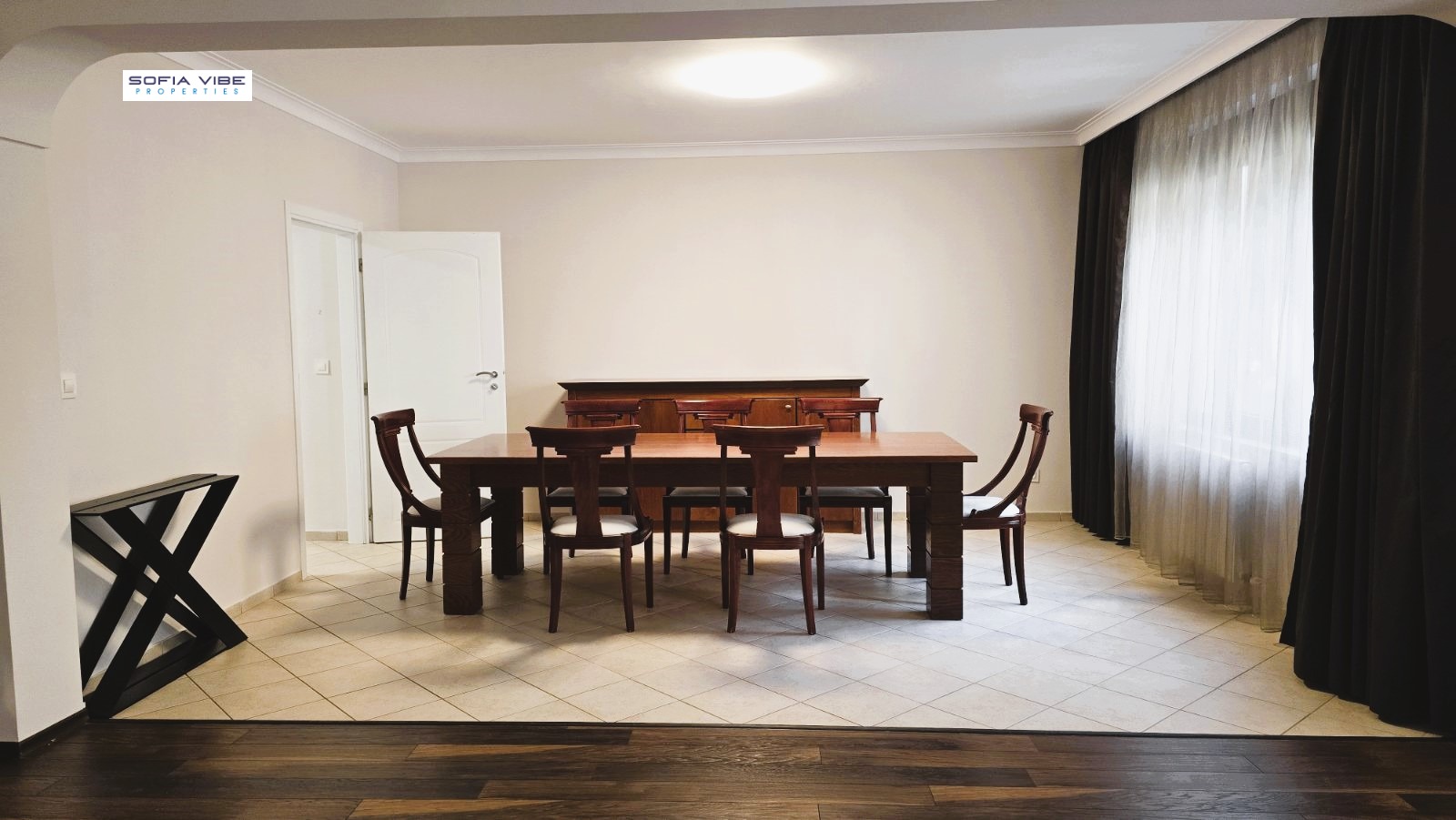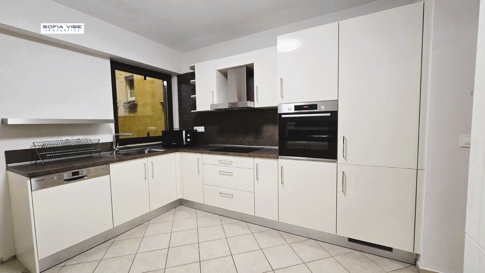 Sofia Vibe Properties presents a spacious, furnished apartment in a new luxury building with 24-hour security, video surveillance, underground parking, fitness studio and beauty salon. The building is located in close proximity to the Alexander Nevsky Cathedral, 5 minutes from the metro station and the park. The apartment is after a major renovation and has the following layout: a huge living room with a dining room, a separate fully equipped kitchen, three large bedrooms, two bathrooms, a guest toilet, a laundry room, a storage room. The apartment is connected to a central heating system, and there are air conditioners in all rooms. It is rented with one double underground parking space, and the price includes a fee for security and maintenance of the building. In the case of a contract with a legal entity, 20% VAT is charged.