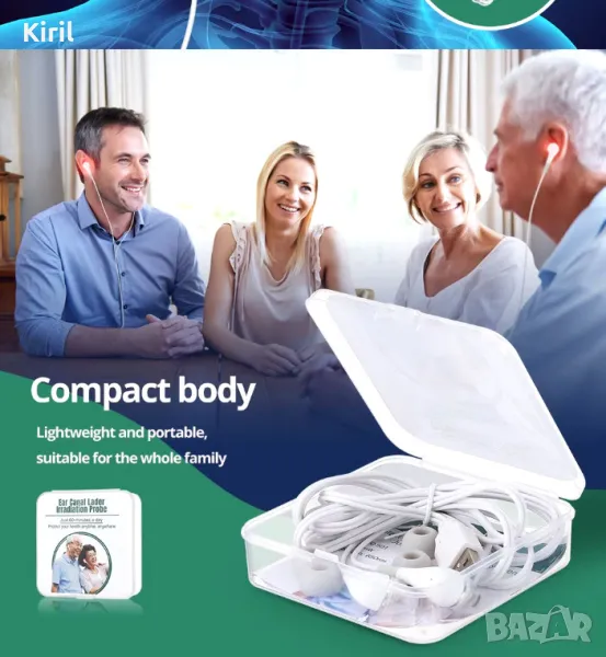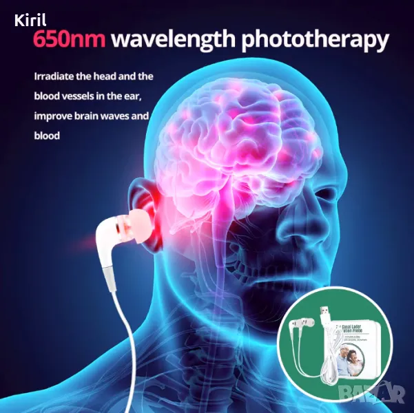 Лазерна терапия за уши LLLT Облъчване Лазерна физиотерапия Шум в ушите Тапа за уши Отит на средното ухо Глухота Диабет Хипертония Характеристики 1. Нашата линия за лазерна терапия на ушния канал използва фототерапия с дължина на вълната 650 nm за облъчване на главата и кръвоносните съдове в ухото, като инжектира голям брой фотони в кръвта, за да подобри мозъчните вълни и кръвта. 2. Помага за балансиране на високото кръвно налягане, намаляване на високия холестерол, високите мазнини в кръвта, високата кръвна захар и т.н. и засилва самовъзстановяващия се ефект на имунната система. 3. Използвайте веднъж на ден сутрин и вечер, 30 минути всеки път, нашето устройство за лазерна физиотерапия помага за намаляване на възпалението и отока, активира клетъчната активност и кръвта, регулира Qi и кръвта и подобрява физическата годност. 4. Компактното и леко устройство за лазерна терапия е лесно за носене, така че можете да използвате този продукт по всяко време и навсякъде и цялото семейство може да го използва. 5.USB универсален интерфейс, поддържа различни захранващи устройства, като компютри, мобилни захранвания, щепсели, лаптопи и др. Спецификации Цвят: Бял Материал: ABS Мощност: 5mW Дължина на вълната: 650nm Нетно тегло: 23g Дължина на линията: 1,5M Размер на кутията за съхранение: 8,3*8,2*2,5CM