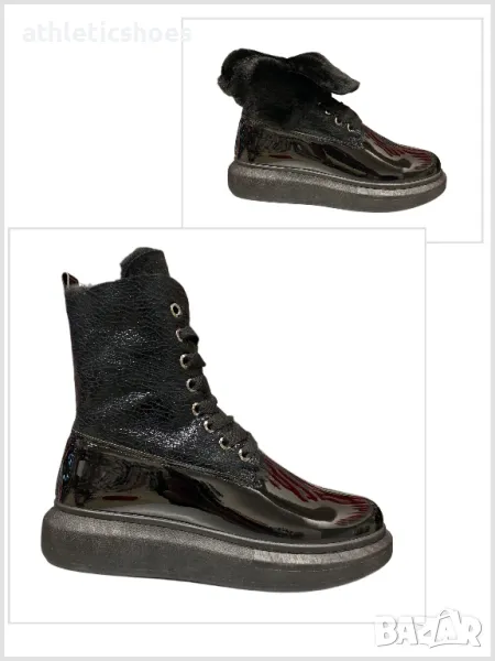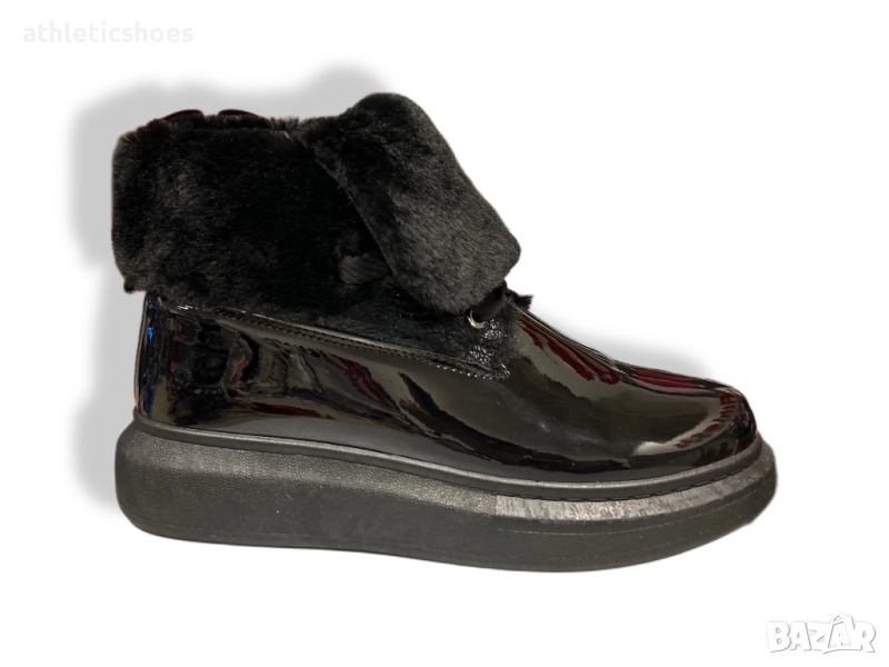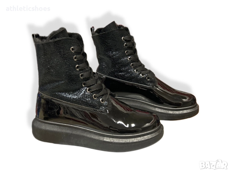 Дамски лачени кецове от еко лак с много топъл хастар,дебела гъвкава подметка и връзки за лесно обуване.