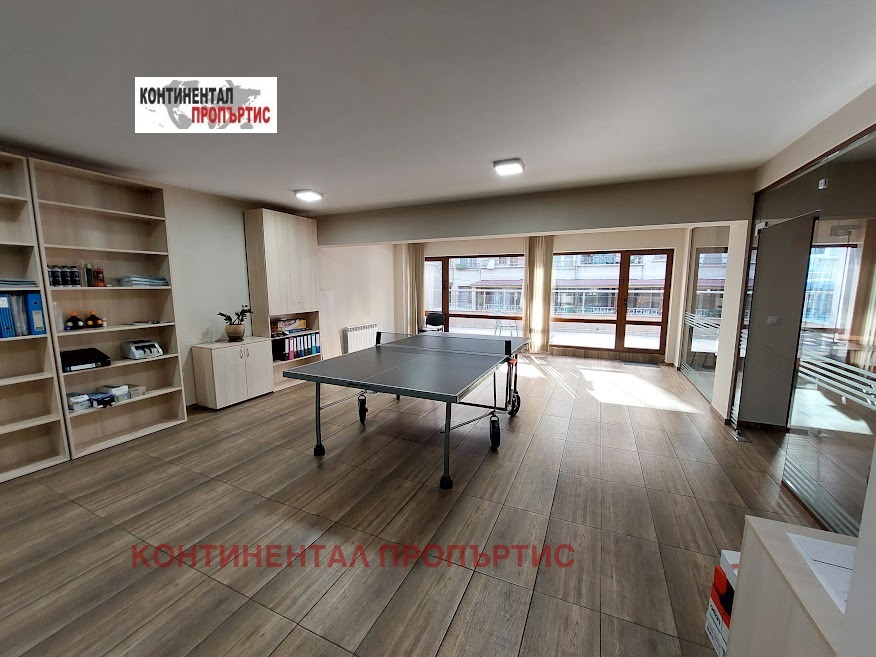 ✔ Състои от: Приемно помещение, Голяма заседателна зала, Две работни помещения, Отделен кухненски бокс, Баня с тоалетна, Склад/Сървърно помещение, Две тераси, едната от които - 27м2 и Входно предверие позволяващо вграждане на гардероб.