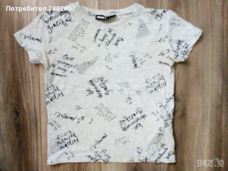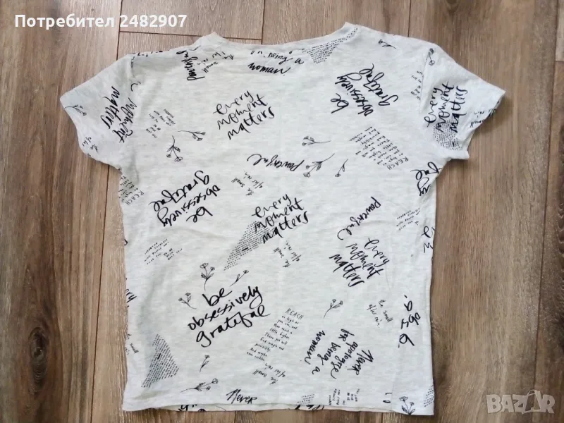 Сива дамска блуза с къс ръкав, размер XХS. Съдържа 98 % памук и 2 % вискоза. Ширина в раменете - 41 см, ширина под мишниците - 46 см, ширина в долната част - 43 см, дължина от рамото до долу - 52 см, дължина на ръкава от рамото - 12 см, ширина на ръкава в долната част - 14 см. Много запазена, почти не е използвана.