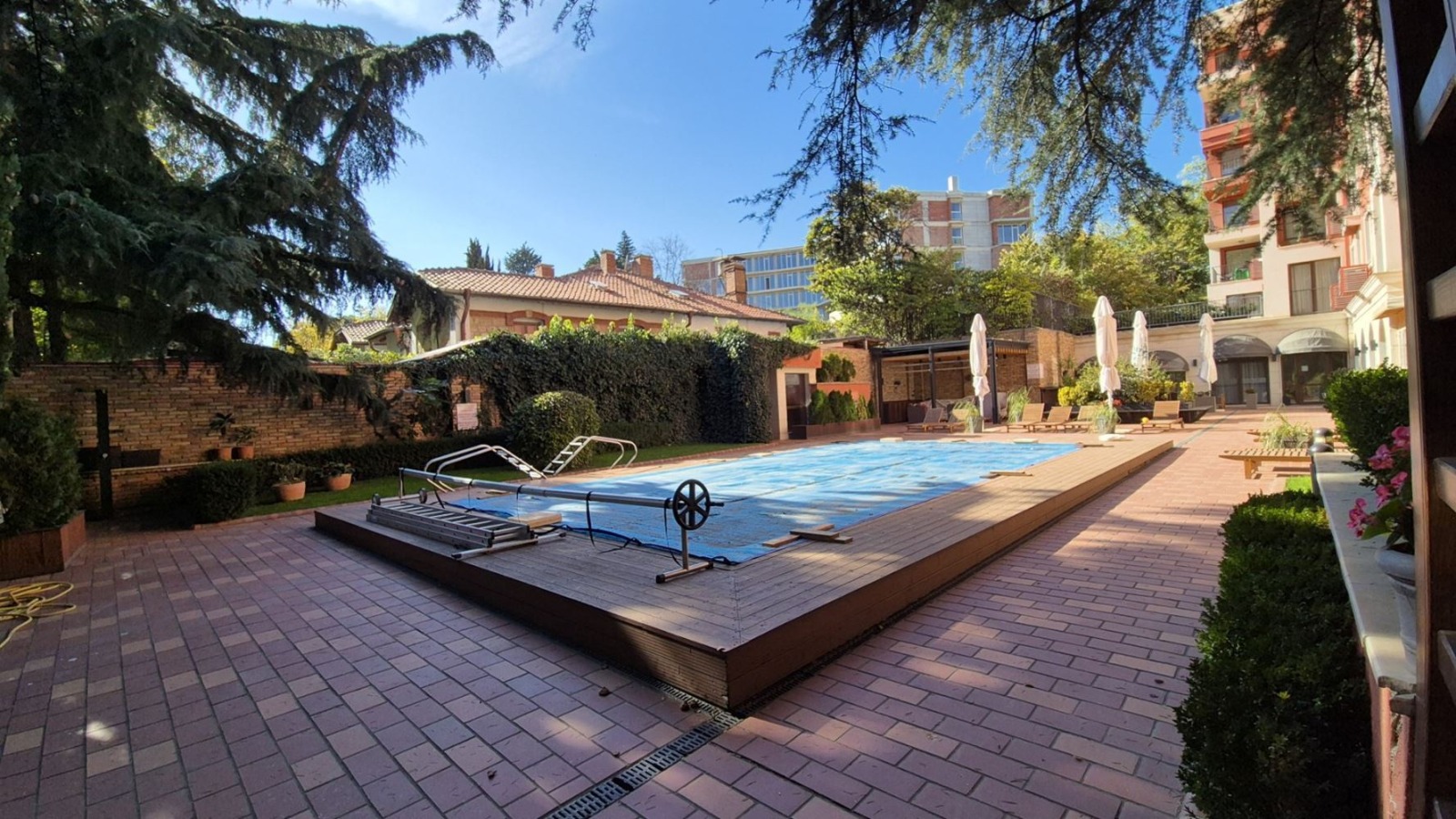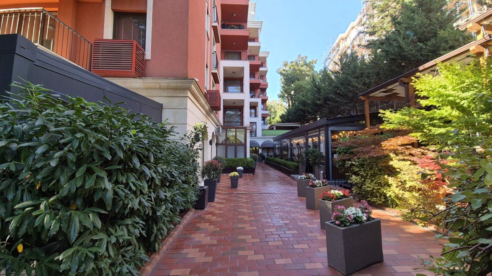 басейн, безопасен детски кът за игра и ресторант на първия етаж, предлагащ разнообразие от вкусни ястия, а също така и охрана 24/7. Всички помещения в апартамента са новообзаведени и оборудвани с подово отопление, осигуряващо приятно топло усещане дори през най-студените дни.