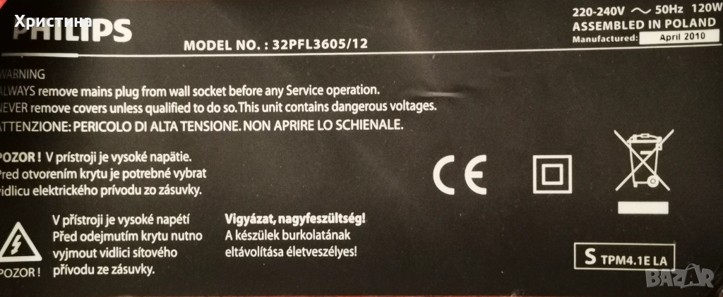 Philips 32PHT4112/12 MB 715G9040-C0B-002-004Y, 32PFL3605/12 715G3786-M1A-000-004X → Обява 47701135