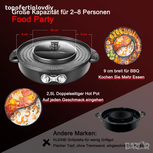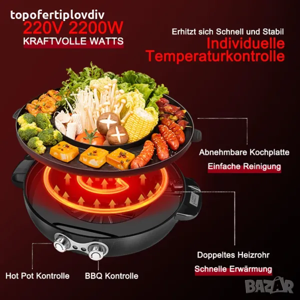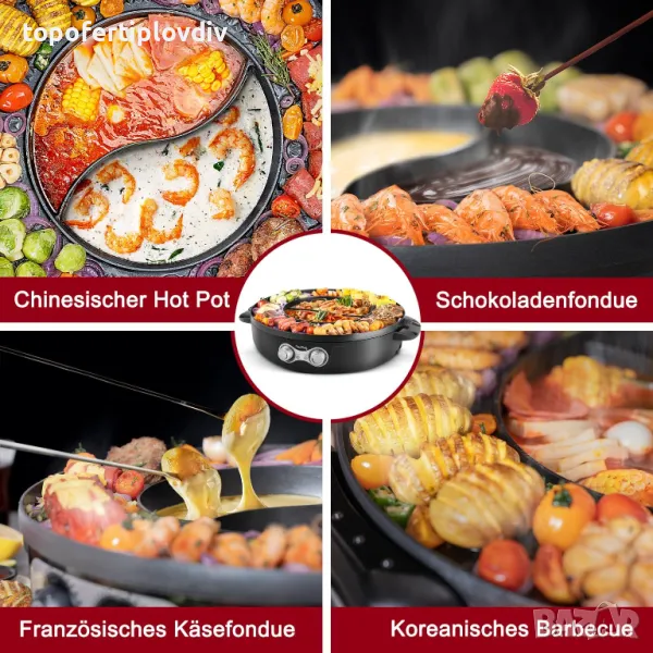 Отделен контрол на мощността: тенджерата и грилът имат индивидуален контрол на мощността за гъвкаво готвене. От китайски хот-пот до френско