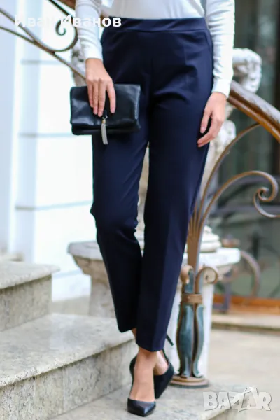 Стилен изчистен едноцветен зимен дамски панталон. Моделът е от мека и приятна леко еластична материя и се предлага в черен, тъмносин, тъмносив и тъмнокафяв цвят. Панталонът е с ластик на талията, с имитация на джобове отпред и отзад и е напълно в крак с модните тенденции.