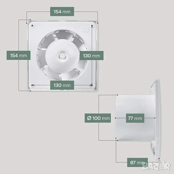 електрически вентилатор за баня със сензор за влажност и таймер → Обява 47702377
