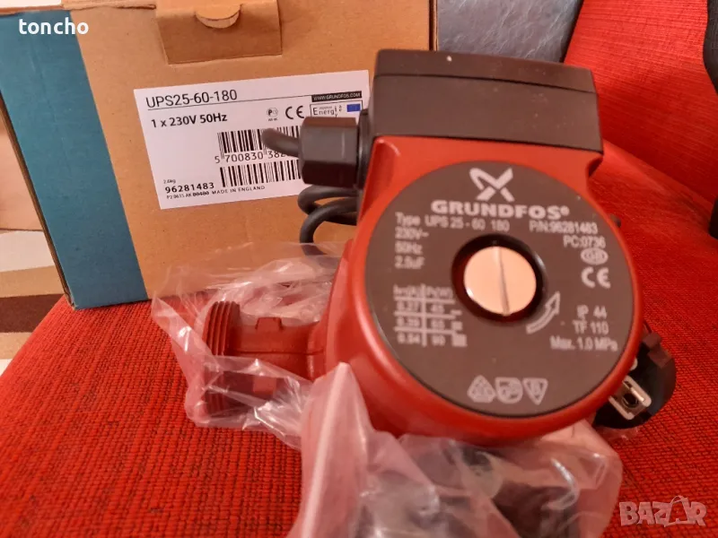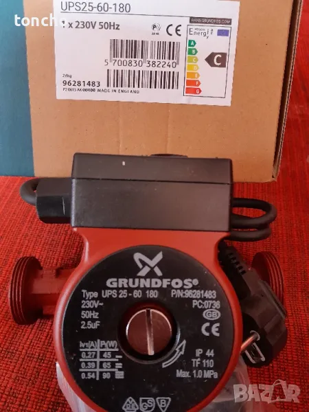 Циркулационна помпа Grundfos UPS2 25-60 180 Циркулационна високоефективна помпа от ново поколение за подово отопление, радиаторно отопление, еднотръбни и двутръбни отоплителни системи. Отговаря на директивата за енергийна ефективност EUP 2015 Приложение: Системи с постоянни или променливи дебити където е желателно да се оптимизират настройките на работната точка на помпата. Системи с променлива температура на потока в тръбите Помпата GRUNDFOS UPS2 позволява постоянно регулиране на производителността на помпата съгласно действителните потребности на системата. Клемната кутия на UPS2 може да бъде монтирана в различни позиции (при спазване на инструкциите за монтаж и експлоатация) Изберете настройките, които отговарят на нуждите на Вашата инсталация и сте готови. UPS2 Ви дава възможността да изберете максимален напор между 4 m, 5 m или 6 m. Прекъсването на захранването не е проблем - помпата помни всички настройки. Ниска консумация на енергия, сравнена с традиционните циркулаторни помпи. Характеристики и предимства: Минимален шум от вентили и т.н.UPS2 разполага с директен достъп до винта за деблокиране Диапазон на температурата на течността: 2.. 95 °C (TF 95) Работен дебит: 0,2 - 3,4 m³/h Работен напор: 1,0 - 6,0 m Максимален напор: 6,1 m Максимална консумирана енергия:.. 48 W