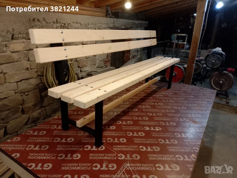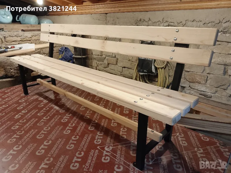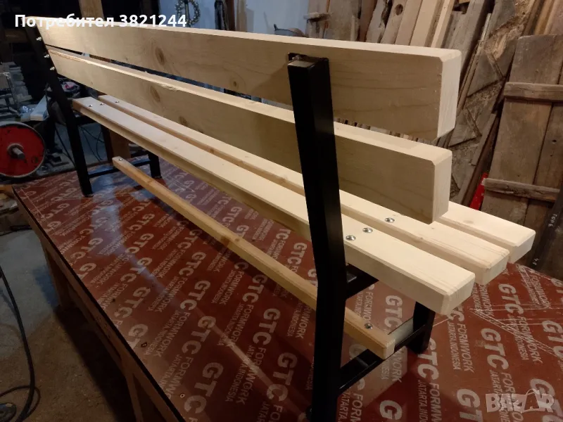 Пейка от прахово боядисан метален профил и иглолистна дървесина → Обява 47703119