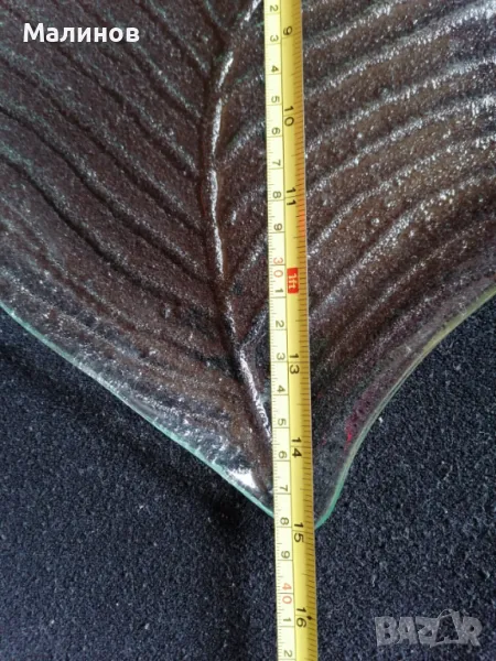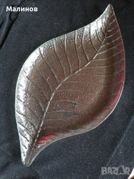 Стъклени плата с формата на листо, зеленикаво стъкло, два различни размера по 1 брой, цената е за бройка.