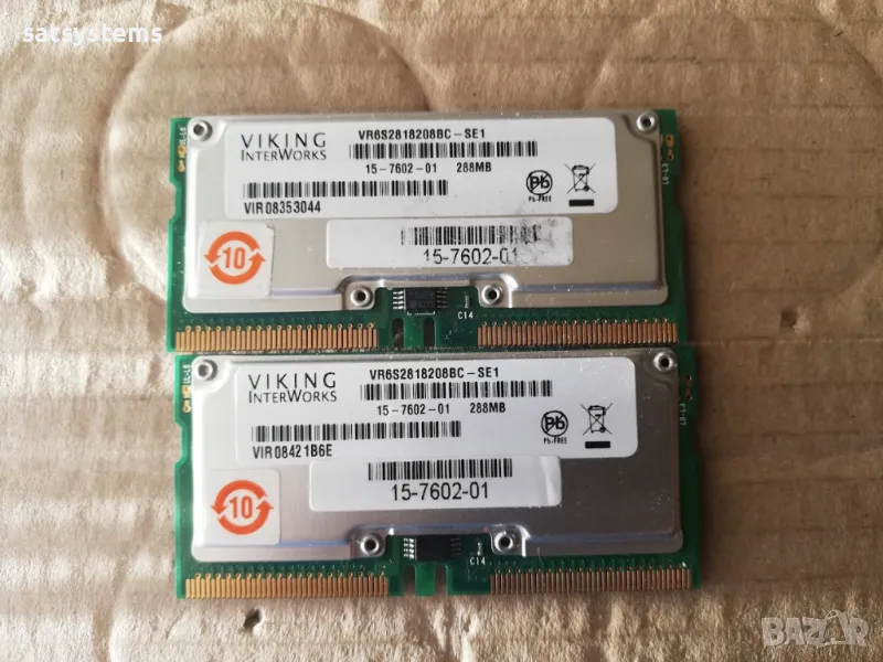 Продавам LOT OF 2 15-7602-01 Viking 256MB PC800 800MHz RDRAM Memory VR6S2818208BC-SE1
