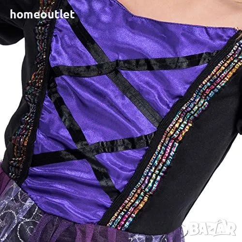 Маскараден костюм и шапка за вещица в черно и лилаво.