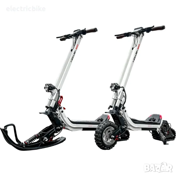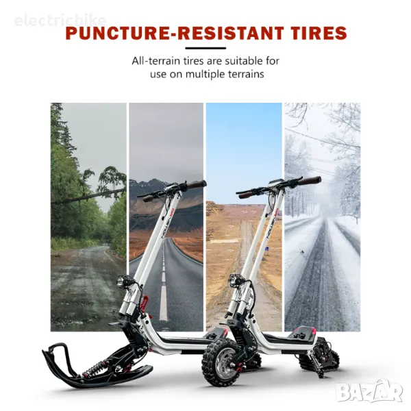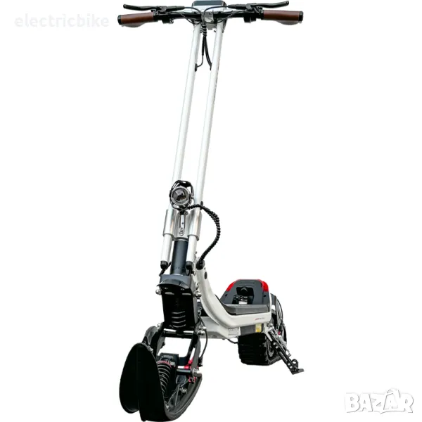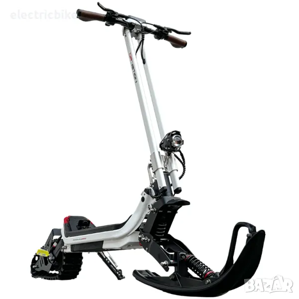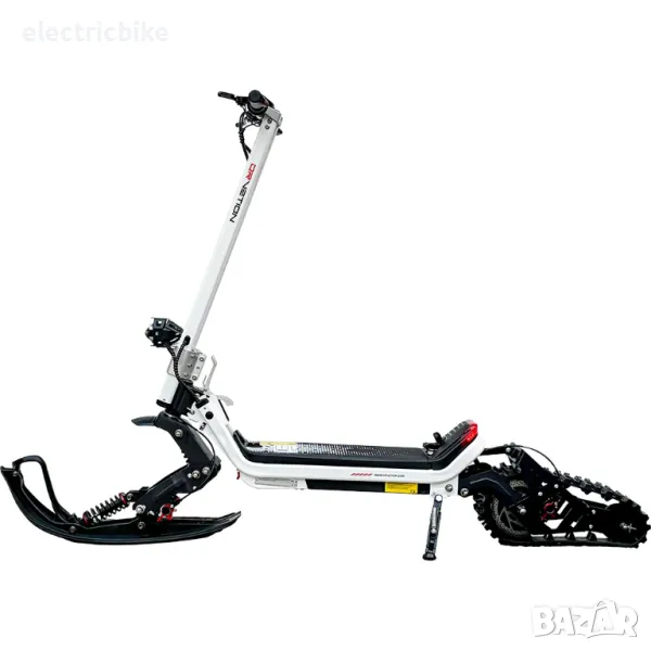 Електрически снежен скутер за всякакви терени, три режима на каране, адаптивен към всякакви пътни условия, с комплект гуми. Мощен ел. двигател 1500W с пикова мощност 3000W, в комбинация с батерия с капацитет от 20.8AH/48V . Пробег с едно зареждане: до 60км.