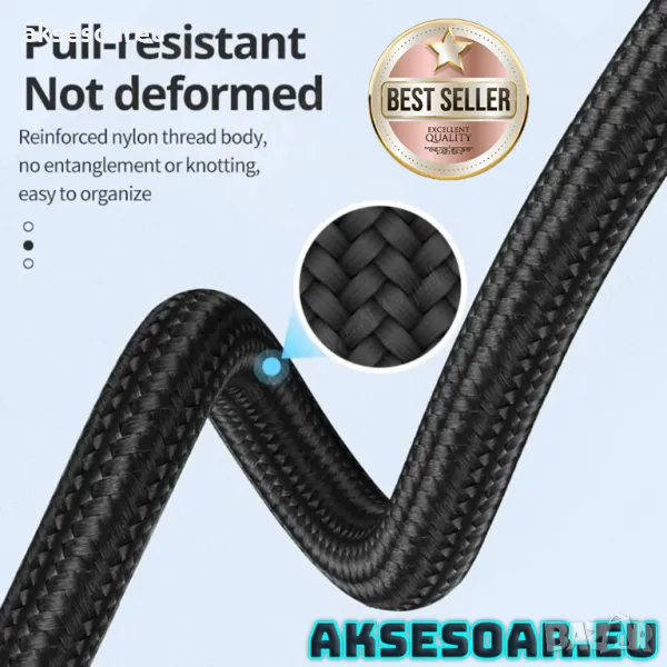 адаптери са изработени от издръжливи плетени кабели с медни проводници, за да