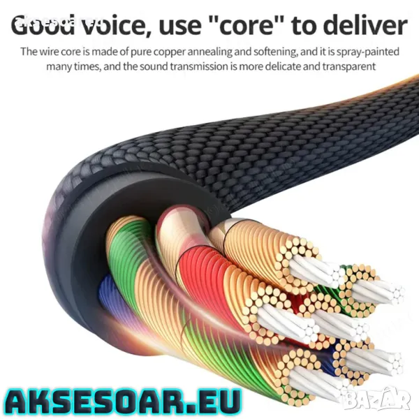 3,5 mm плетен адаптерен кабел за слушалки и усилватели