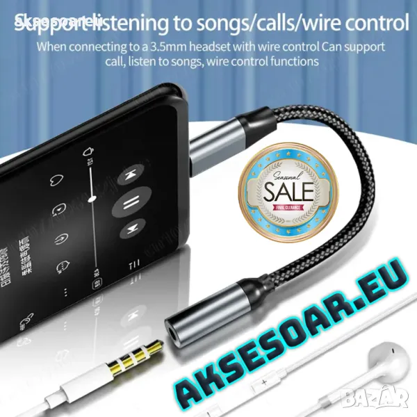 Samsung Huawei Xiaomi адаптер за слушалки 3,5 аудио кабел