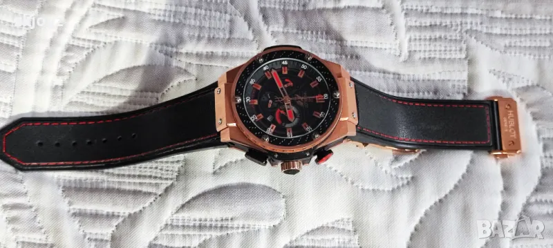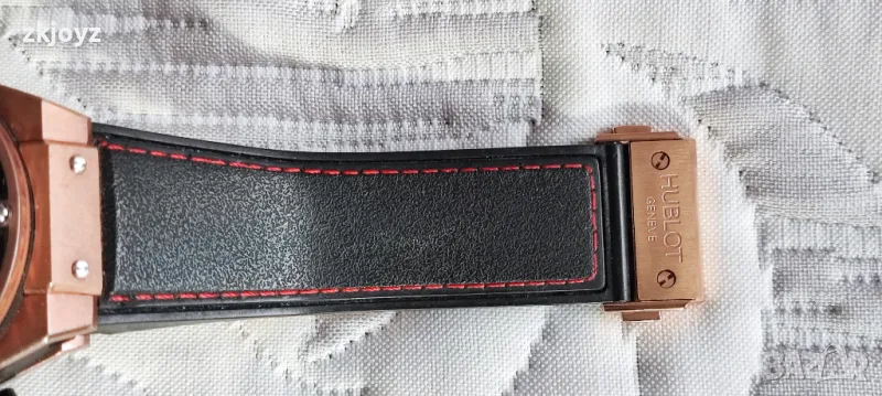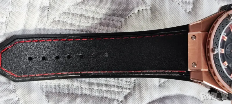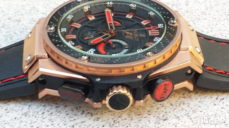 изработен от стомана с РVDпокритие, черна каучукова каишка, стоманена закопчалка брандирана с логото на фирмата, диаметър на касата 46 мм, дебелина 17мм, дължина на каишката ( без металната