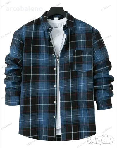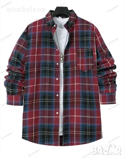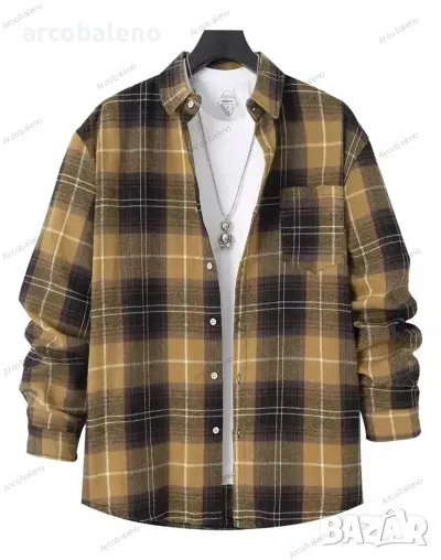 Ежедневна мъжка карирана риза с дълги ръкави, 4цвята