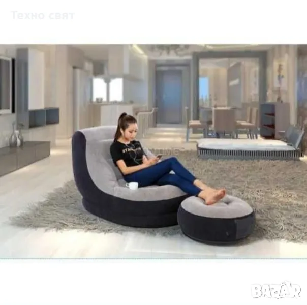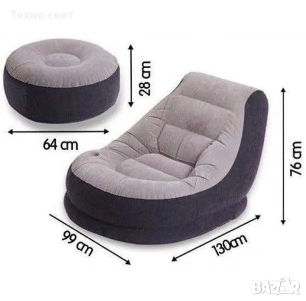 Стилен надуваем сет фотьойл и табуретка в сиво черно. С удобен и елегантен дизайн и мека материя за повече комфорт. Идеален за употреба на закрито или на открито.