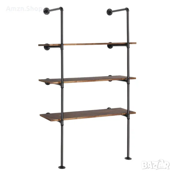 Индустриален стенен рафт от железни тръби отворена лавица за книги библиотека ретро рафтове