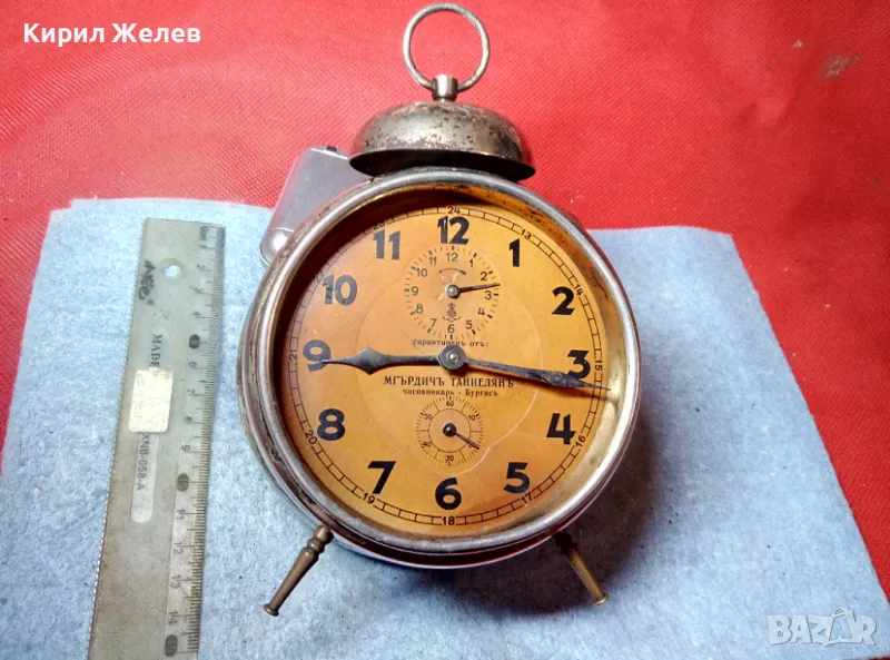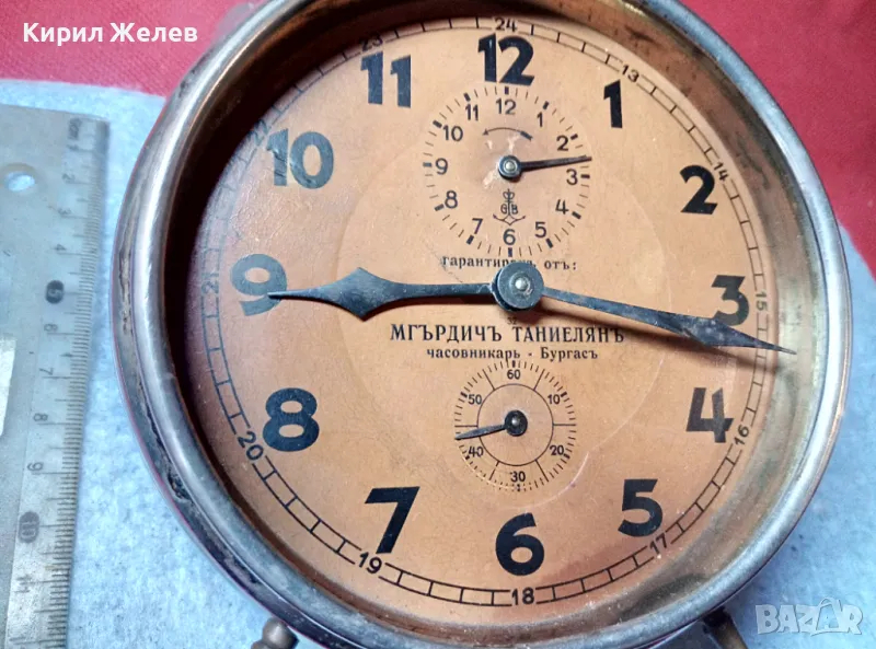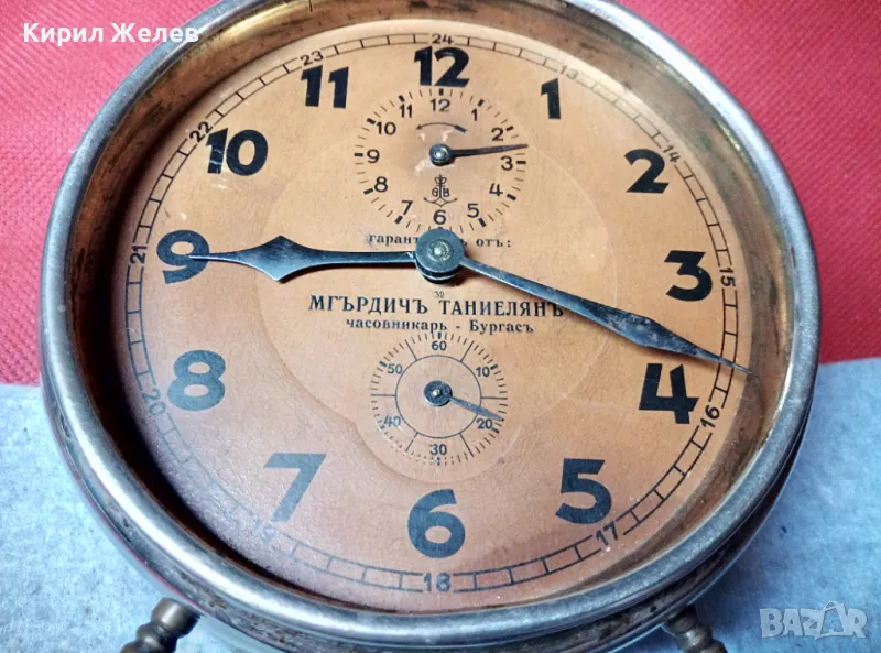 GUSTAV BECKER ГАРАНТИРАНЪ отъ МГЪРДИЧЪ ТАНИЕЛЯНЪ Часовникаръ - Бургасъ РАБОТЕЩ Старинен БУДИЛНИК