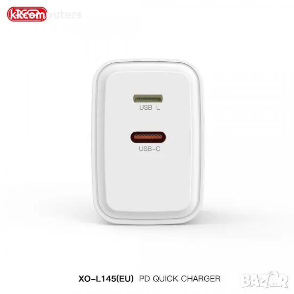 Зарядно/Адаптер 220V / XO-L145 20W / 1xPD, 1xLightning(iPhone) + Type-C - Lightning Кабел / Бял Барк → Обява 47709182
