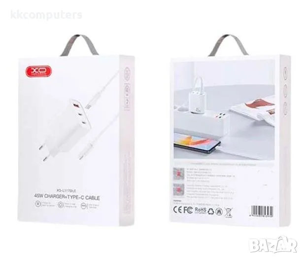 Зарядно/Адаптер 220V / XO-L117 45W / 2xPD, 1xUSB / + Type-C - Type-C Кабел / Бял / Баркод : 456417 → Обява 47709288