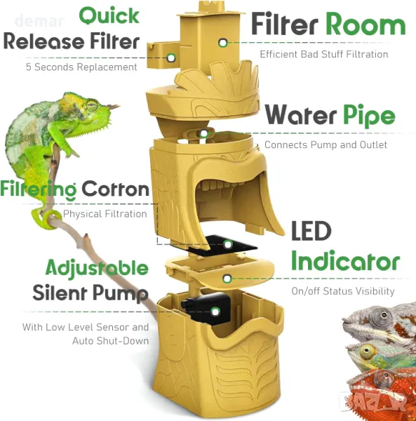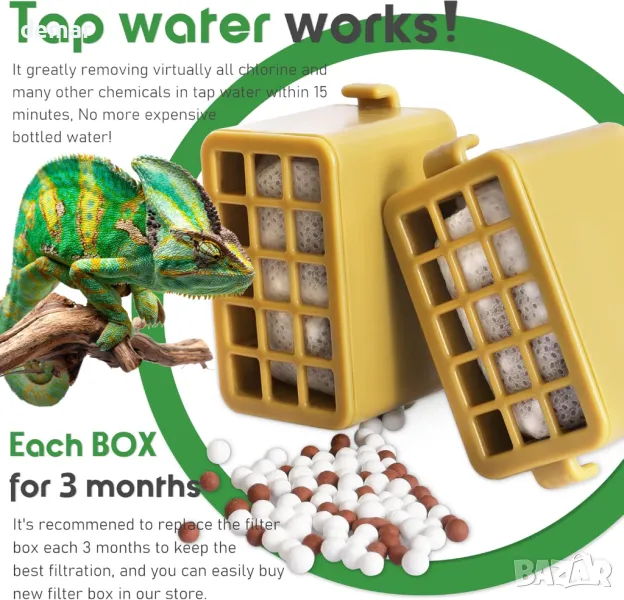 NEPTONION Устройство за вода за влечуги с филтър, автоматично изключване, допълнителен филтър, жълто