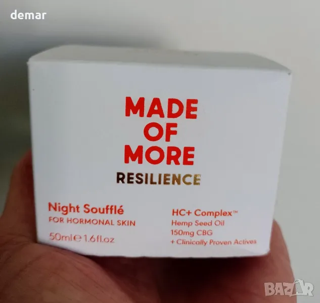 Resilience Night Soufflé е ефективна терапия за една нощ с лека текстура, подобна на суфле, която се топи в кожата, симулирайки възстановяващия ефект на спокоен нощен сън. До сутринта кожата изглежда по-стегната, по-гладка и сияещо здрава. Този продукт оптимизира циркадните ритми на кожата, за да подобри възстановяването през нощта и да стимулира клетъчния обмен, разкривайки по-едър и сияен тен. Съдържа антиоксиданти, които предпазват от увреждане от свободните радикали и поддържа нивата на колаген за по-плътна кожа, което го прави идеален за уморена, скучна кожа и жени, изпитващи нощни горещи вълни. Ключовите съставки включват HC+ комплекс, масло от конопено семе, CBG, Superox-C и Grifolin, които работят заедно за успокояване, защита и подобряване на производството на колаген. B-Circadin и Gladback осигуряват дълбоко възстановяване и хидратация, докато пептидите с много тегло и маслото от ший поддържат структурата и влагата на кожата. За употреба, масажирайте в почистена кожа преди сън, като се фокусирате върху шията и лицето и помислете за нанасяне на двоен слой за интензивен ефект на маската.
