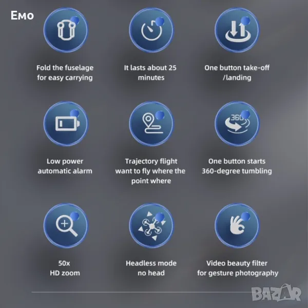 Със своята компактна конструкция, мини дрона е лесен за пренасяне и съхранение. Можете да го носите навсякъде, без да заема много място в багажа ви.