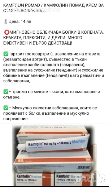 Крем Чудо за ставни болки и Камфолин , снимка 1 - Козметика за тяло - 47709859 Крем Чудо за ставни болки и Камфолин , снимка 2 - Козметика за тяло - 47709859 Крем Чудо за ставни болки и Камфолин , снимка 3 - Козметика за тяло - 47709859 1/3