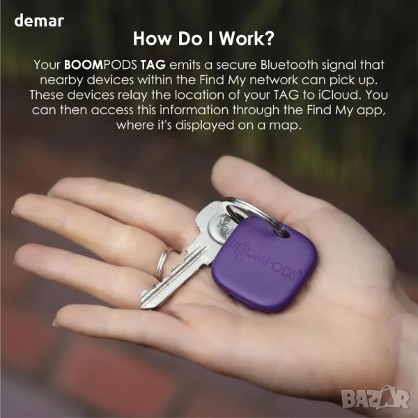 Boompods Boomtag Bluetooth устройство за проследяване, тракер, съвместим с Apple Find My App, лилав