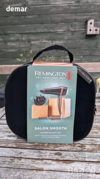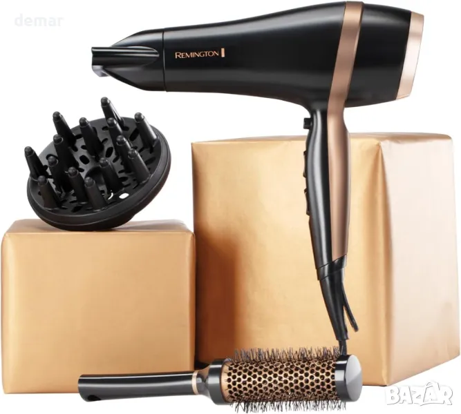 Сешоар Remington подаръчен комплект с концентратор и дифузер, керамичен, йонен, чанта, 2000 W, черен