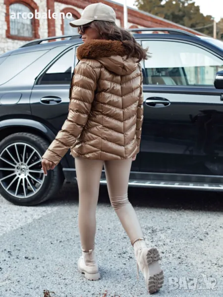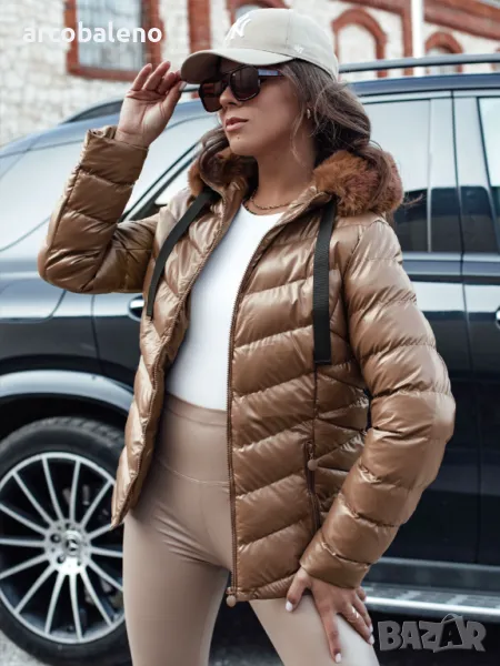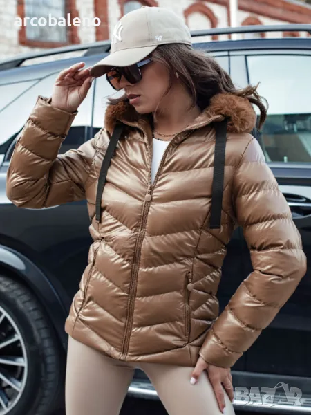 Капитонирано яке с качулка от лъскава материя, с което ще се откроите от тълпата. Моделът е втален, благодарение на което красиво подчертава женствените форми. Якето е с несваляща се качулка и свалящ се косъм, така че можем да го направим в по-спортен или елегантен вариант. Предлага се в няколко цветови варианта