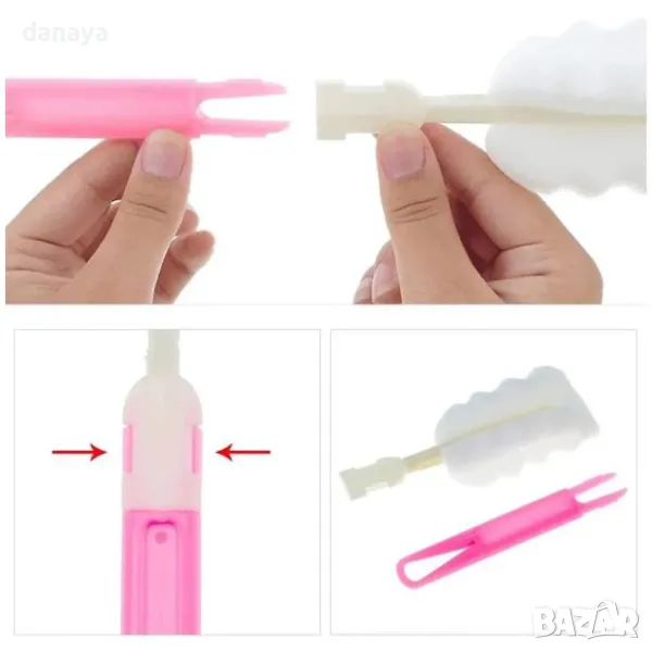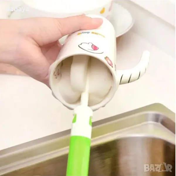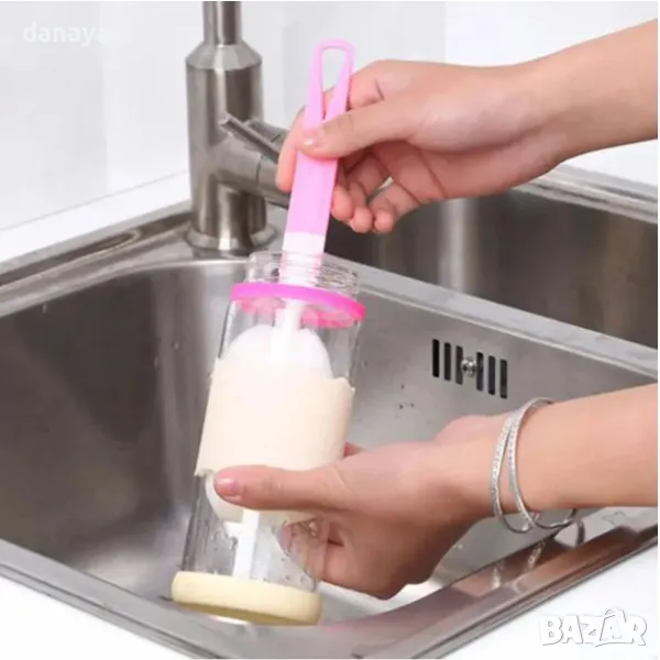 Разглобяема кухненска четка за миене на чаши, бутилки, шишета, която е специално проектирана за миене на дълбоки и тесни съдове като чаши, бутилки, вази, бебешки бутилки, буркани, термоси и други съдове с трудно достъпно тяло за почистване. Тази четка за съдове почиства нежно повърхността без да я уврежда. Четка за бутилки, която е снабдена с разглобяема дръжка, която я прави лесна за съхранение, тъй като не заема много място. Много удобна е при пътувания.