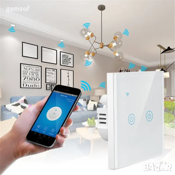 ключ с WiFi управление (двоен) за осветително тяло. Ключа предлага