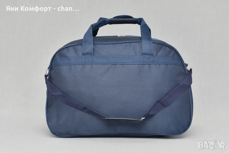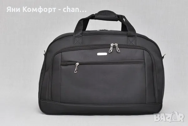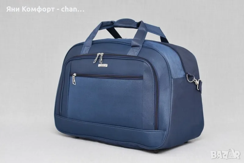 Пътната чанта с кат.ном. 5232 е изработена от здрав текстил и предлага голямо пространство за съхранение. Изберете цвят: син, черен, сив. Снабдена е с едно основно отделение и два външни джоба с цип за организиране на вещите. Има ергономични дръжки за носене в ръка и отделна регулируема дръжка за рамо. С размери 60 х 39 х 28 см, тази чанта е идеална за пътувания и ежедневна употреба.