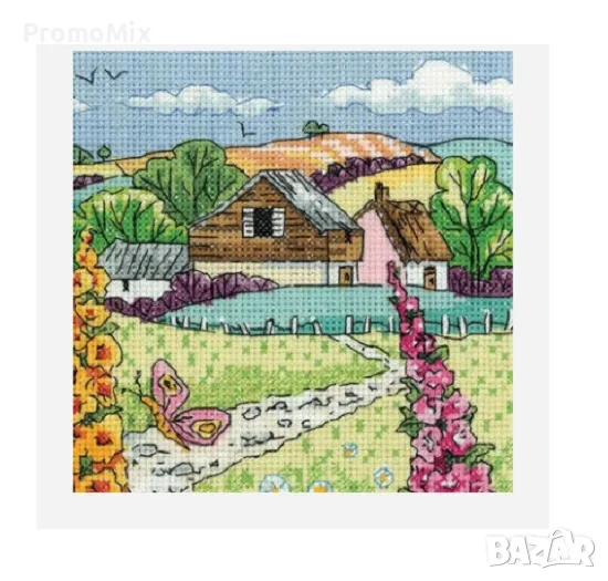 Гоблен Heritage Crafts KLHF1617-A Hollyhock Farm творчески комплект бродерия пейзаж на Цветя мулине