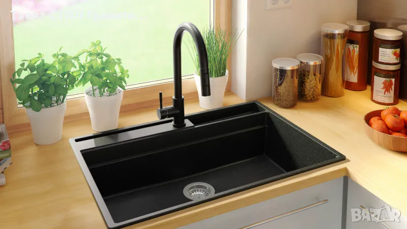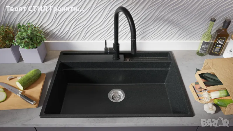 Графит кухненска мивка от гранит Осло 80 Премиум 780 x 530 мм → Обява 47714203