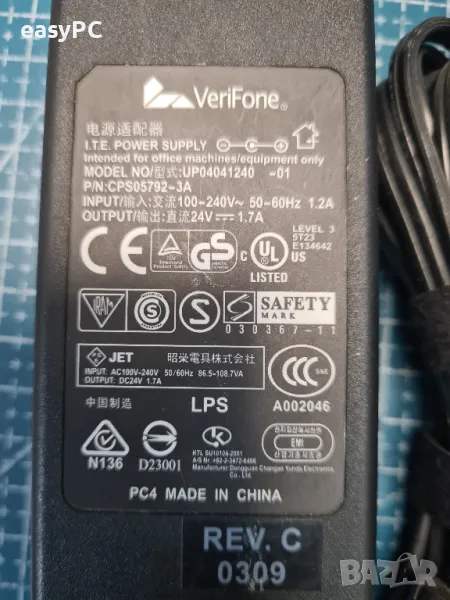 Оригинален захранващ адаптер VeriFone Model NO: UP04041240-01 24V 1.7A