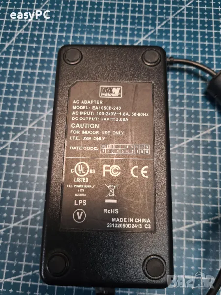 Продавам оригинален захранващ адаптер за MW Power Model NO: EA1050D-240 24V 2.08A 50W. Адаптера е употребяван, но е напълно функционален и работи. Има защита от пренапрежение и защита от прегряване. Марката е гаранция за качество.